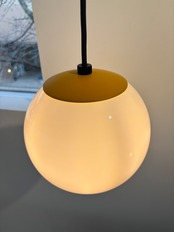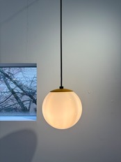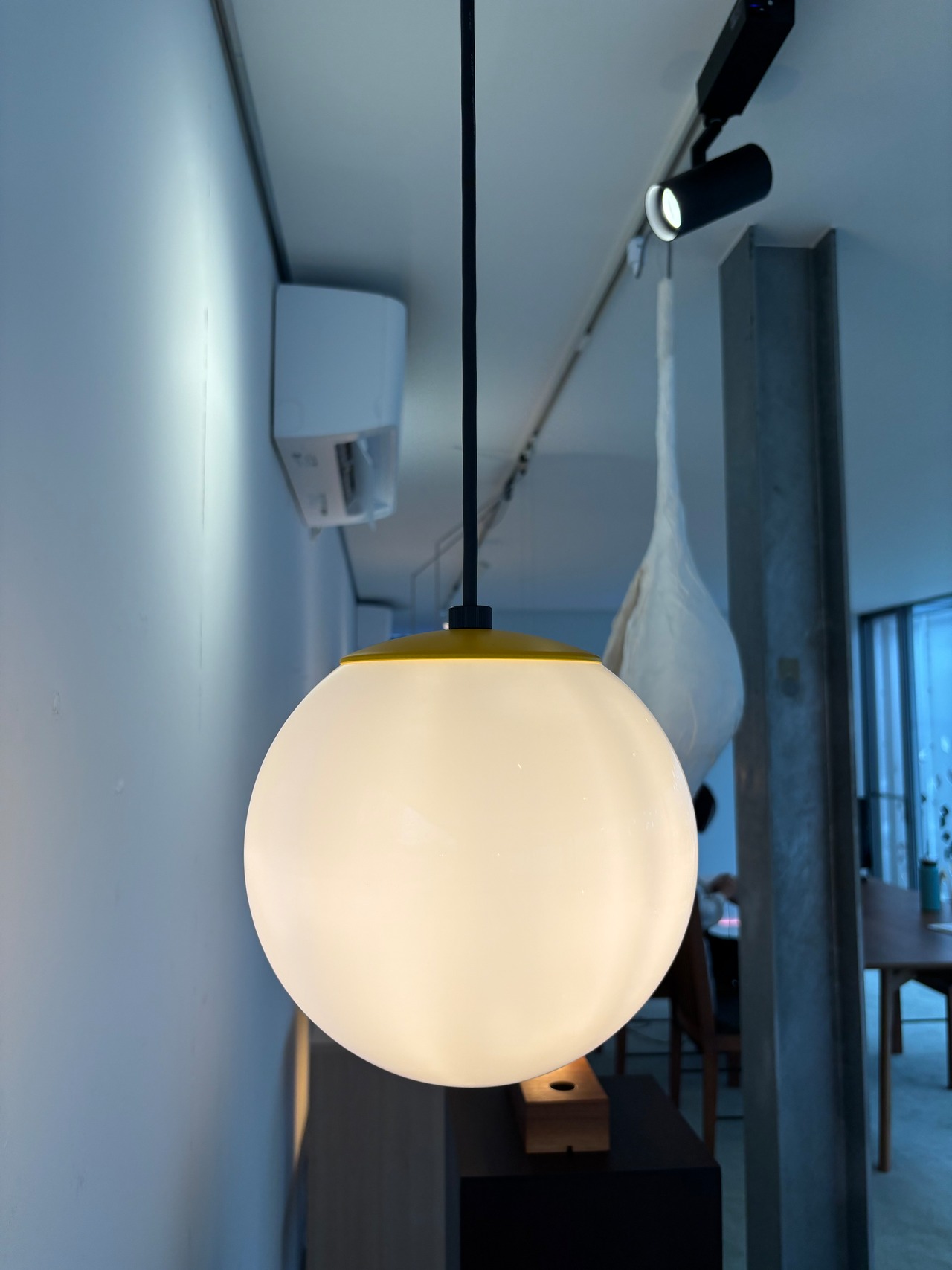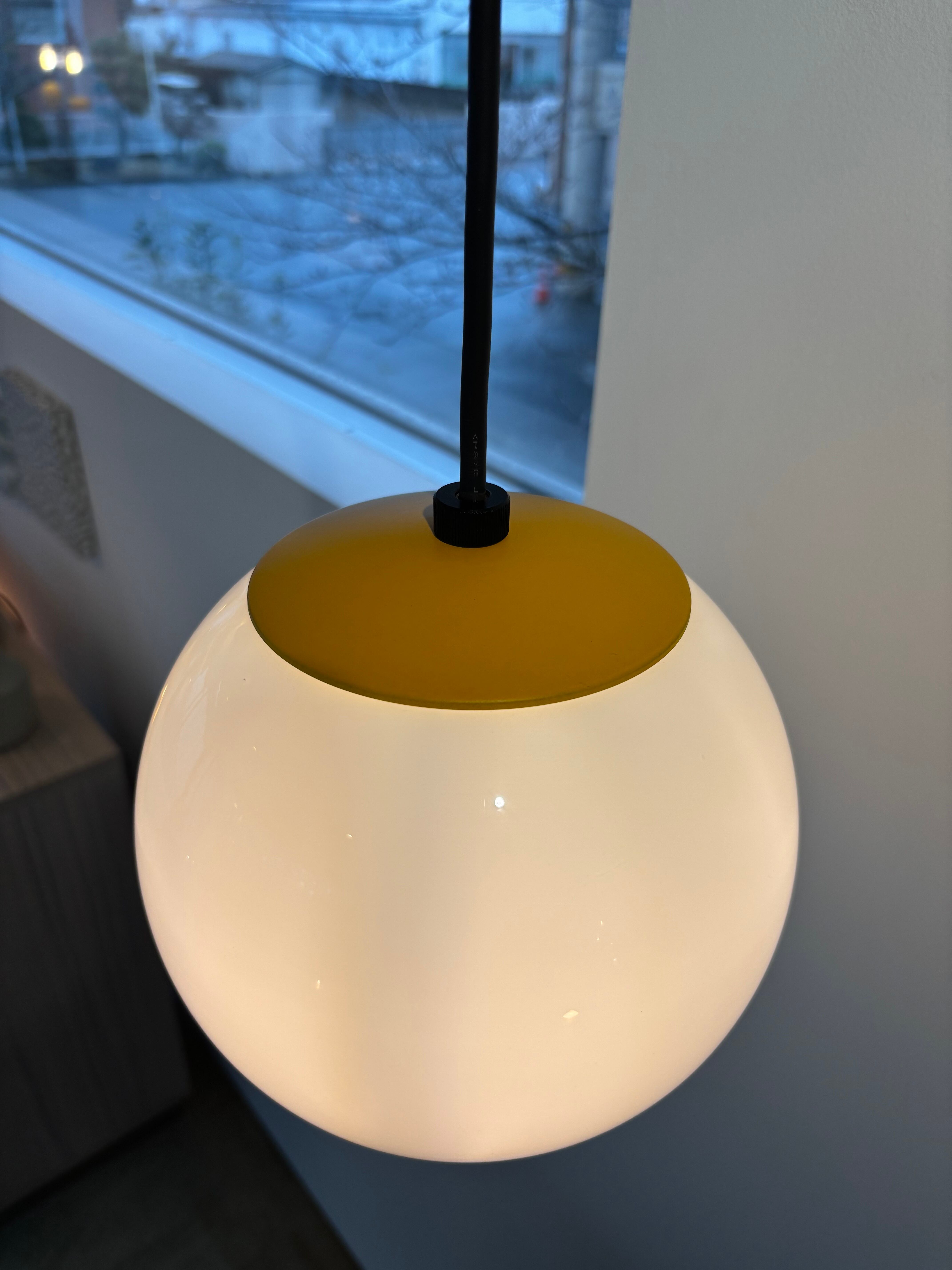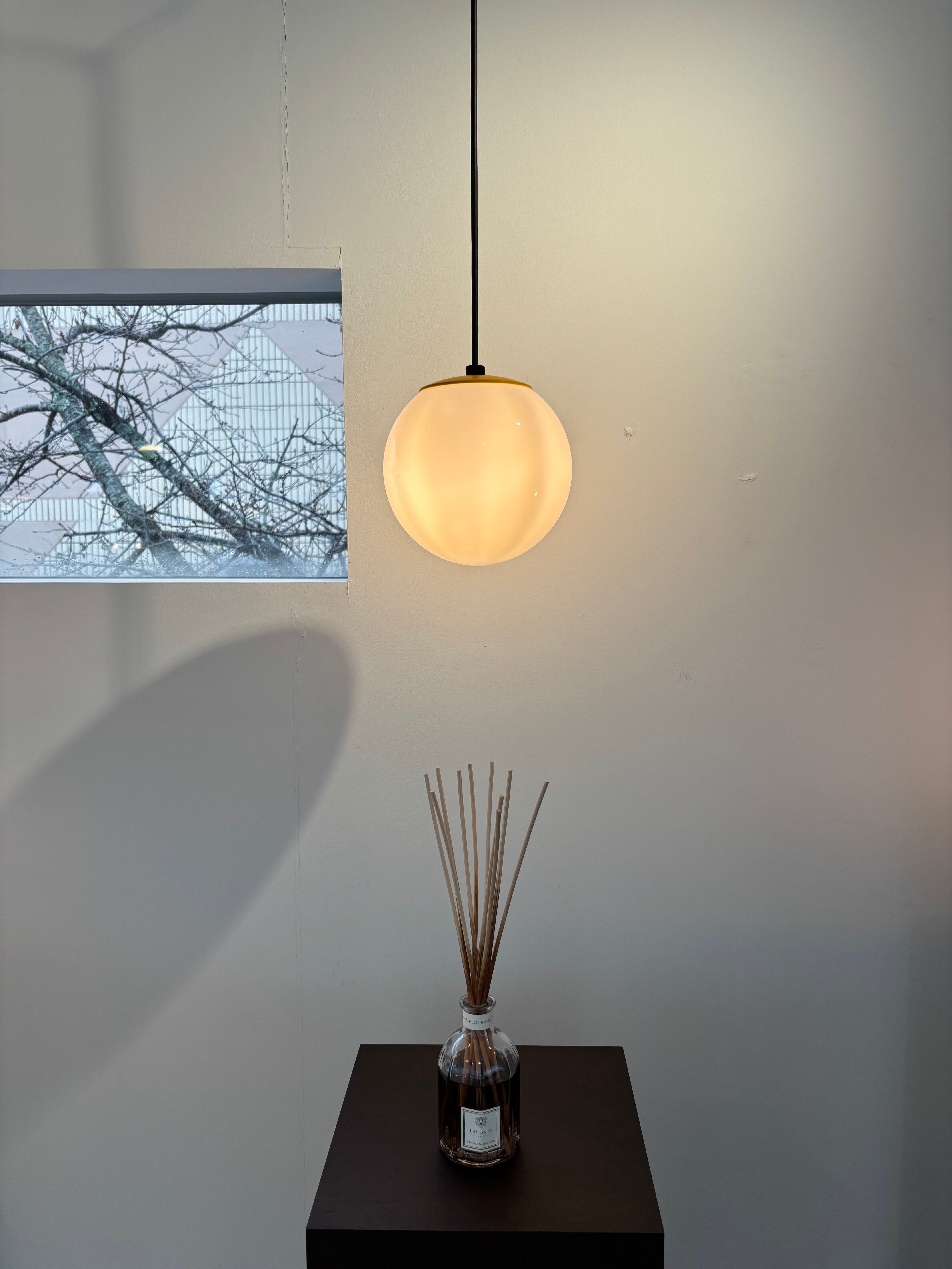 コロンとした形とシェードが乳白色ガラスなのでどこか、懐かしい感じのペンダントです。