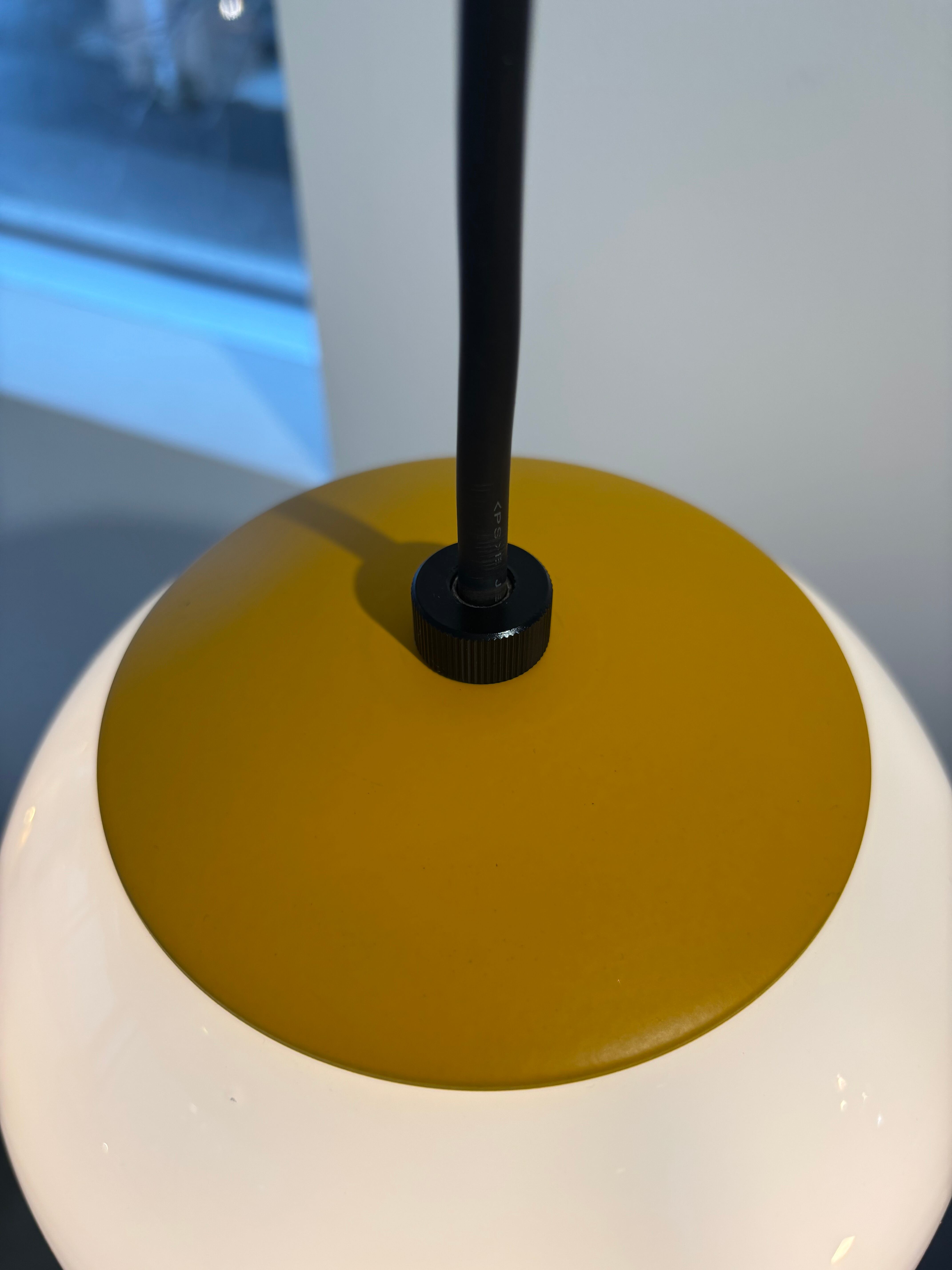 またシェード受け部分をオリジナルカスタムでイエローに塗装を施しておりますので、玄関、吹き抜け階段などインテリアのアクセントになります。