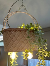 植栽用バスケットをシェードとして使用したペンダントライトです。