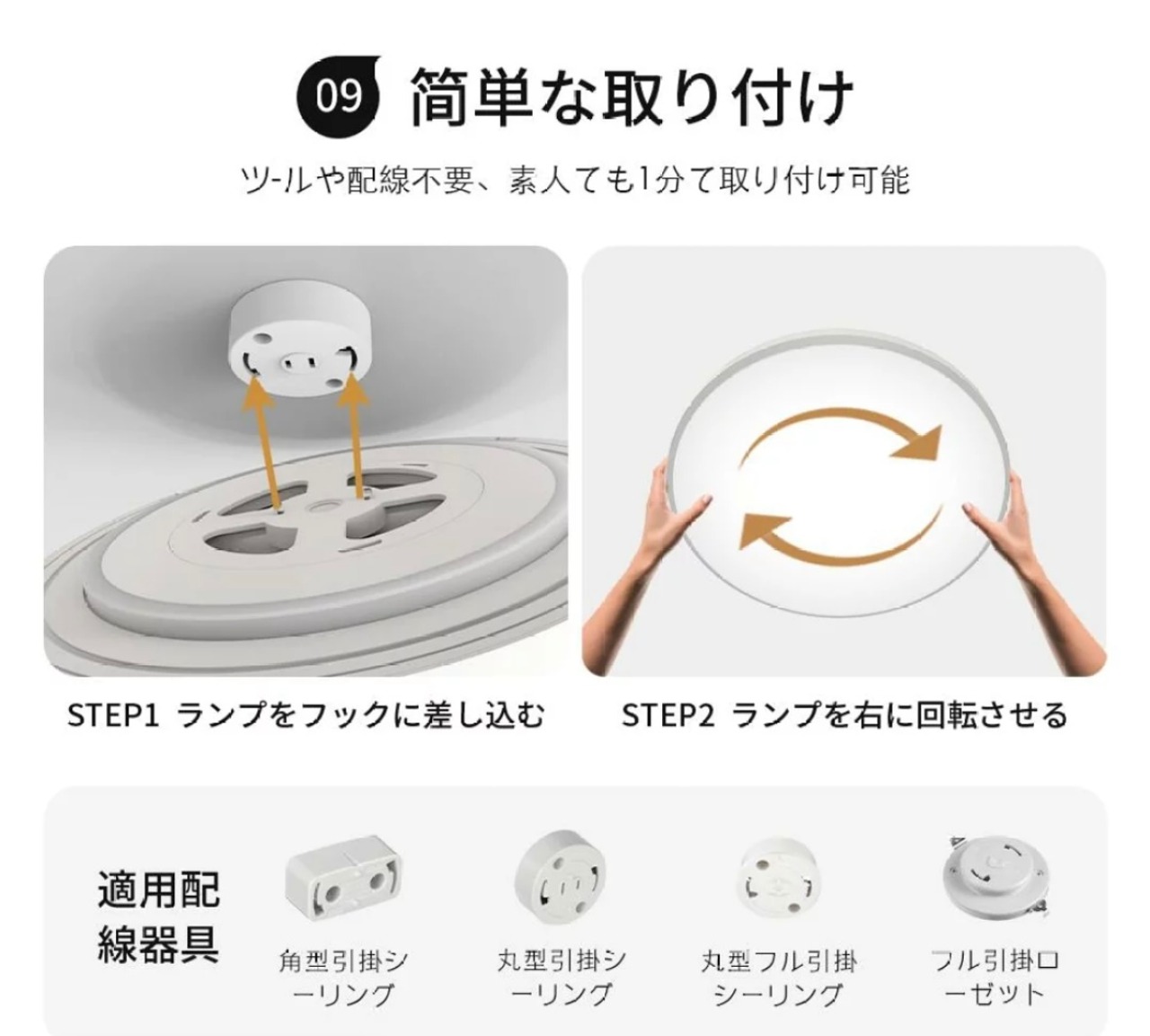 また、薄型で軽量なので取り付けも簡単で照明器具を目立たせずに空間をスッキリと引き立てます。