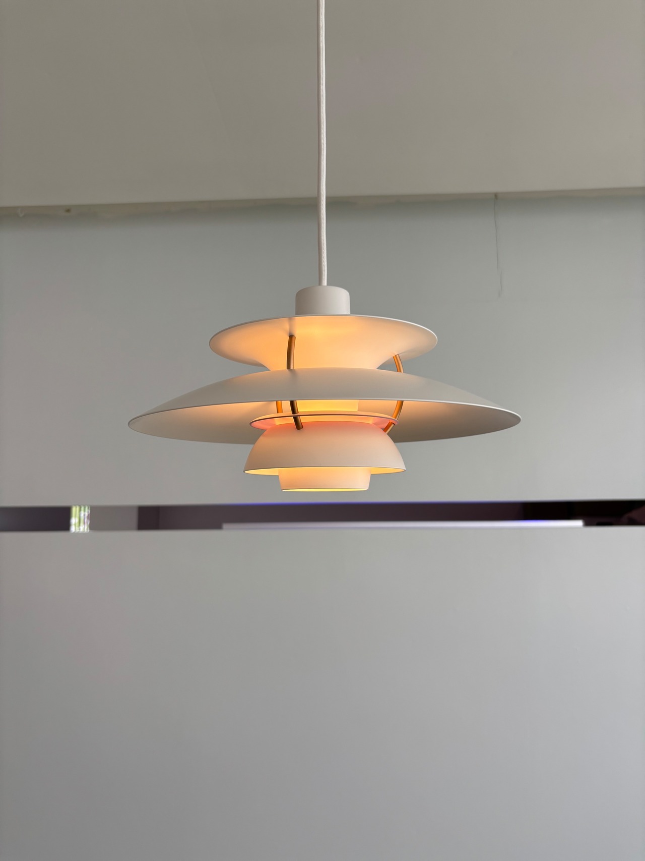 大小サイズの重なるシェードは、まぶしさを感じないように電球自体を包み込む構造となっており「PH 5」の最大の特徴である「グレアフリーデザイン」はしっかりと継承されています。