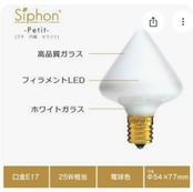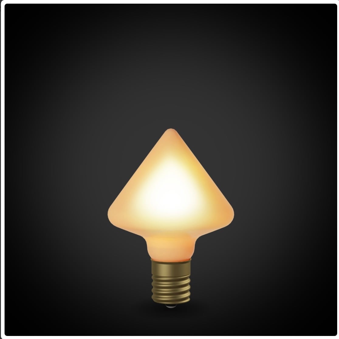 電球は、円錐型のガラス形状で、ガラス内側にはシリカ電球と同じく光を拡散する工夫が施されています。 フィラメント電球のような美しい見た目を再現しており、デザイン性が高く、インテリアのアクセントにもなります。省エネで長寿命なLED電球です。