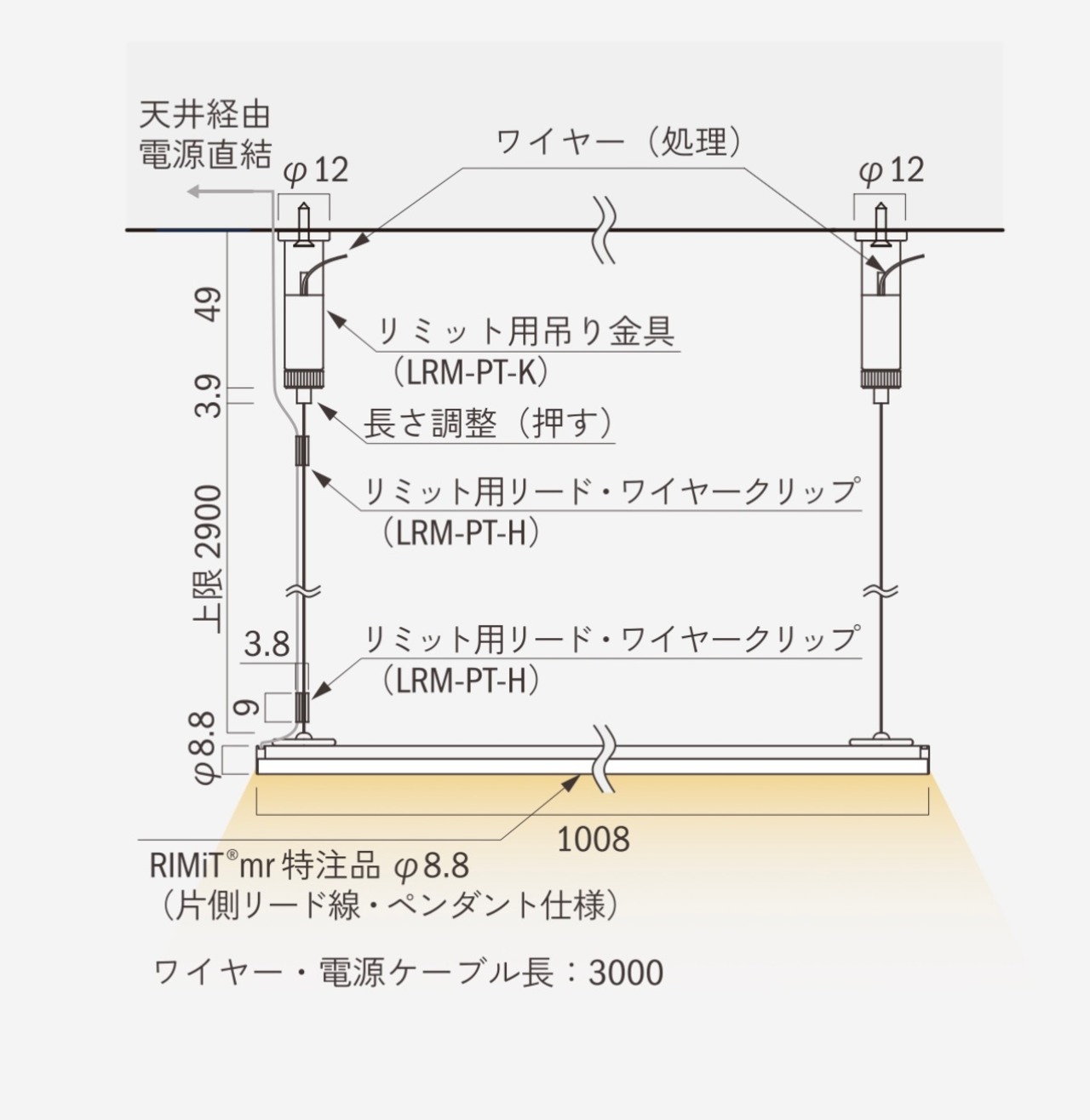 断面サイズがペンのような細さのペンダントライトで、ドットレスのライン照明です。直径8.8㎜のコンパクト設計で角のない柔らかい光を実現します。