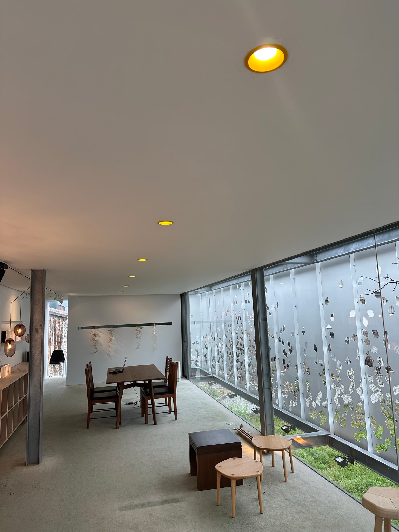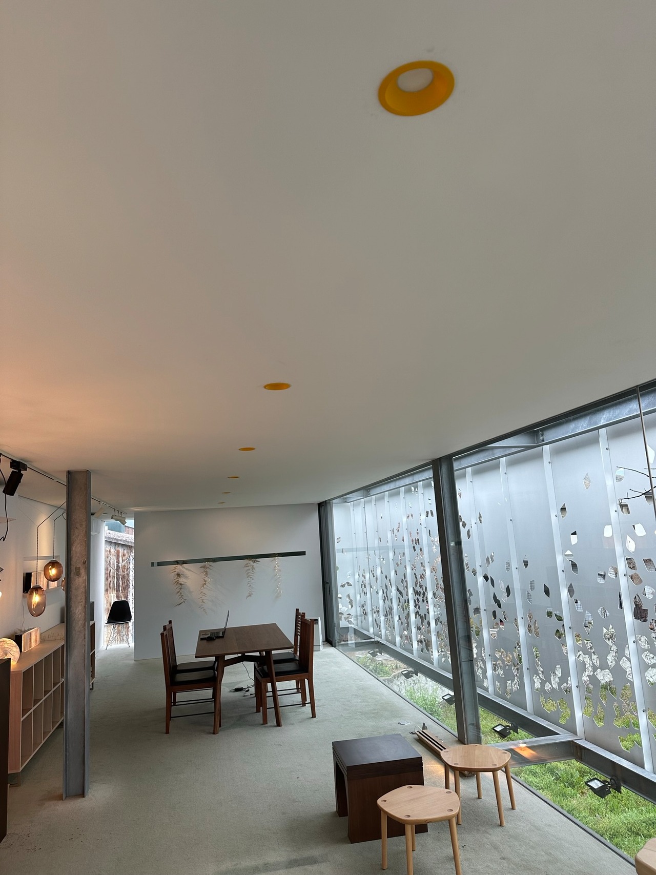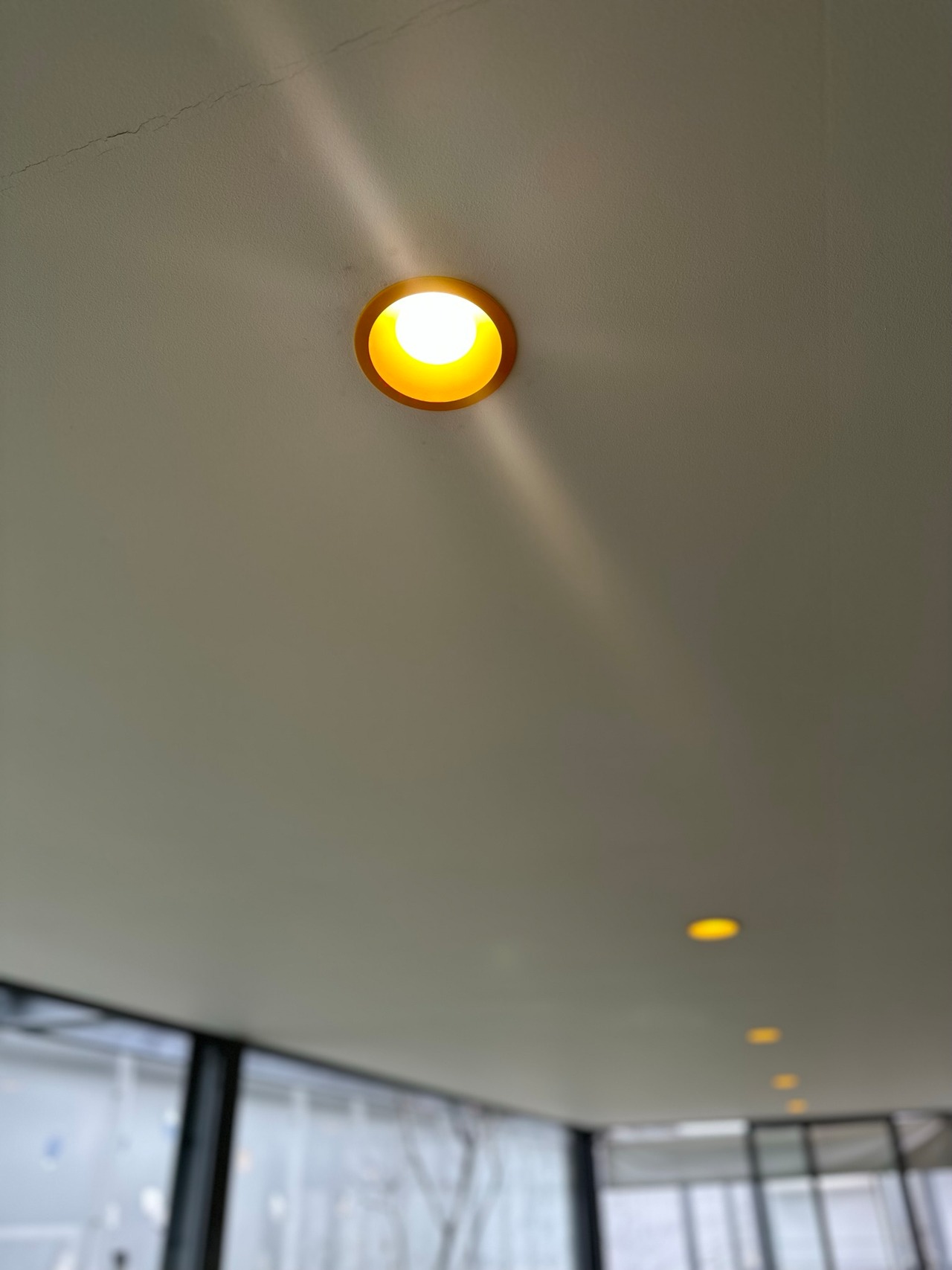 点灯しても消灯していても、かわいい黄色いダウンライト。
