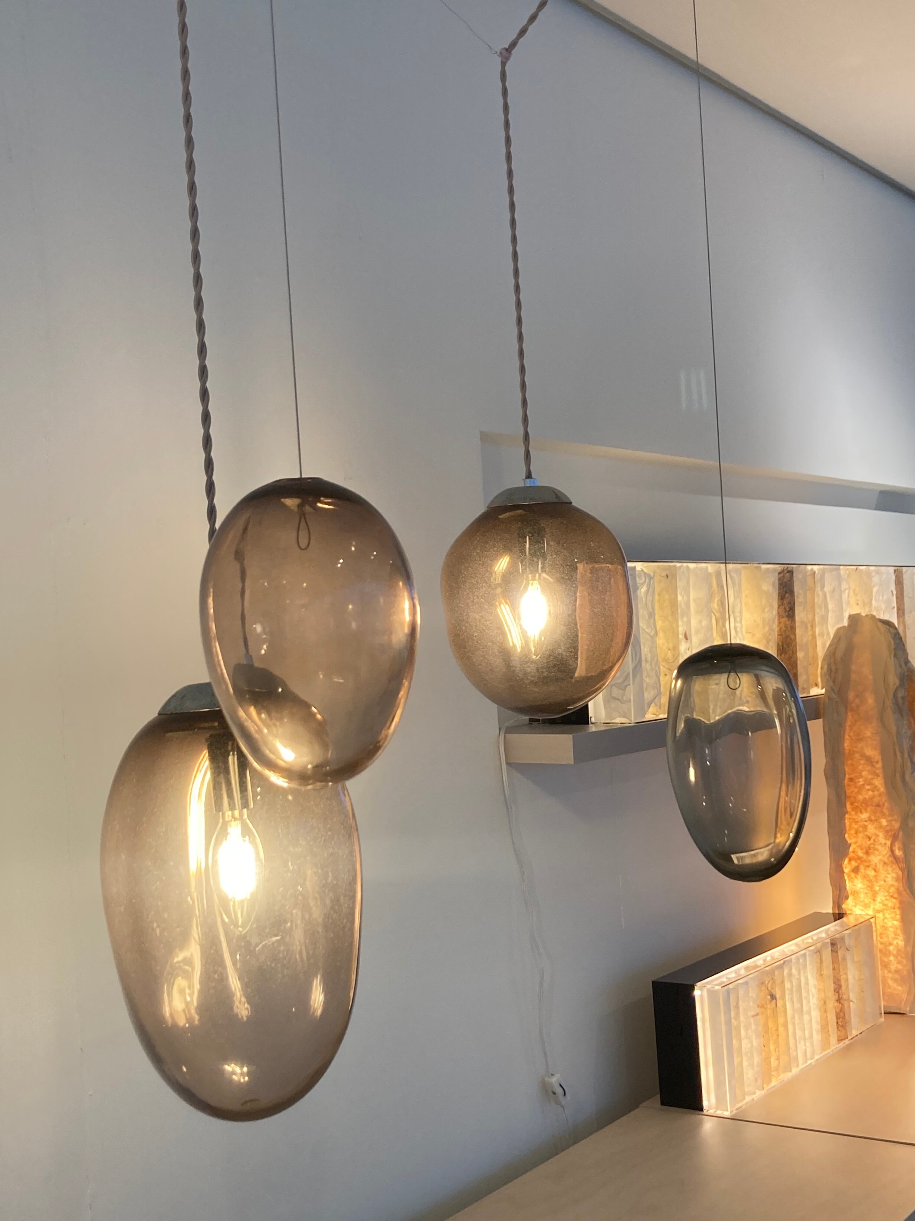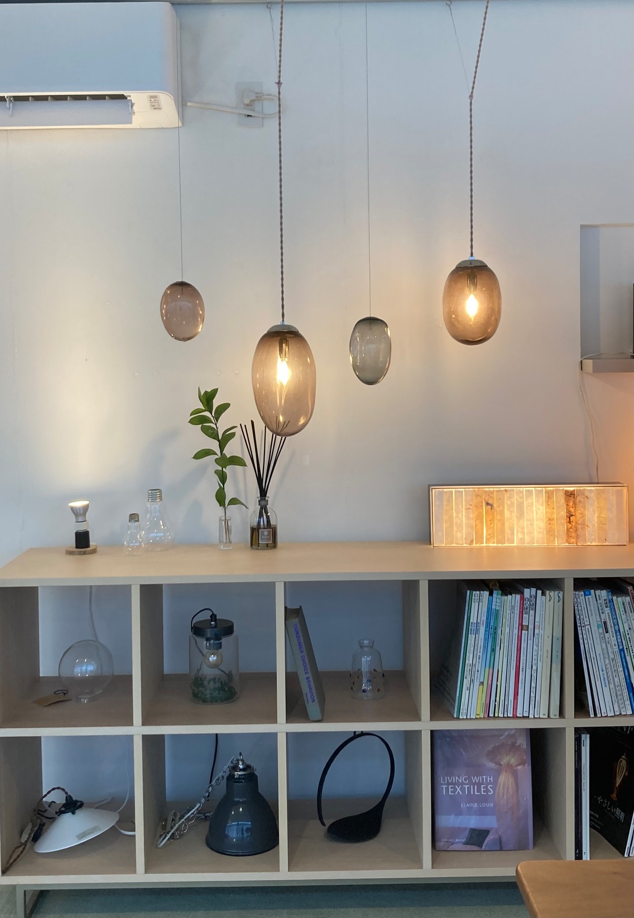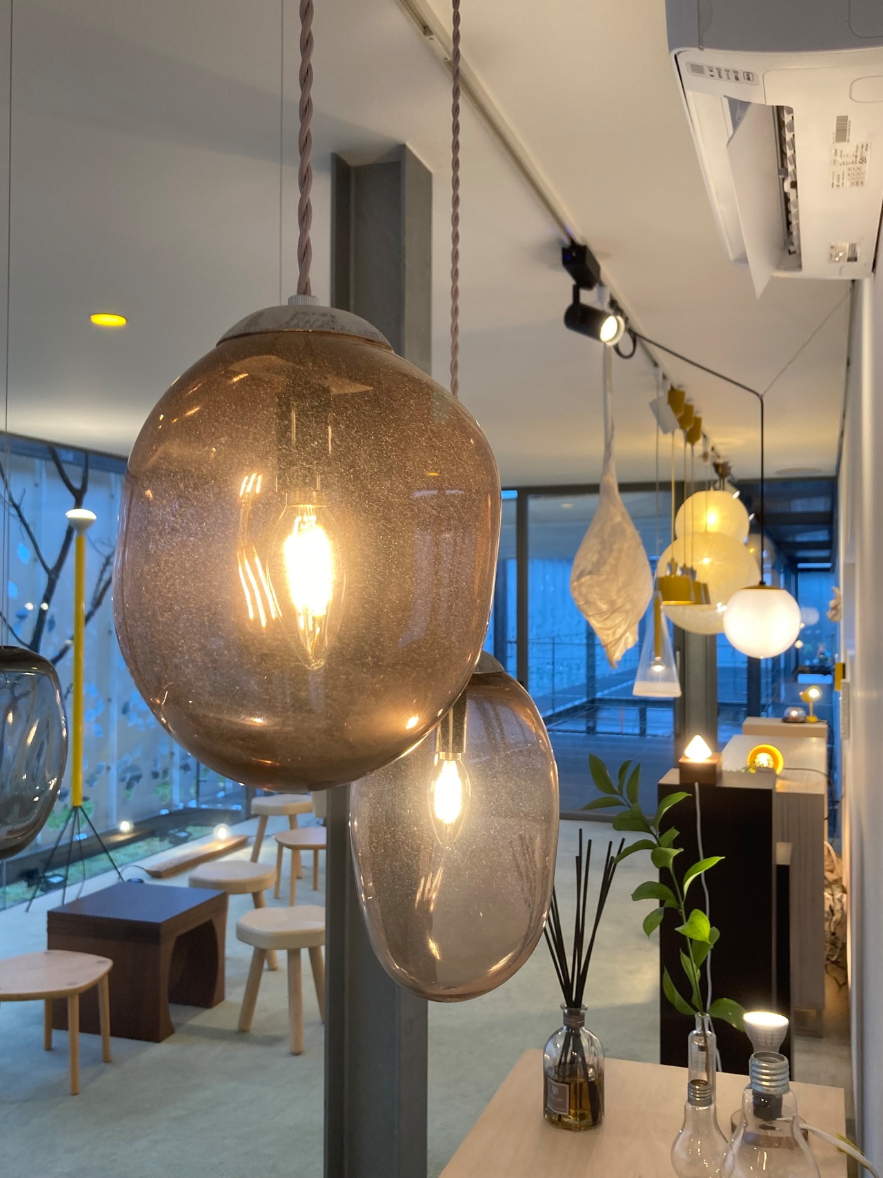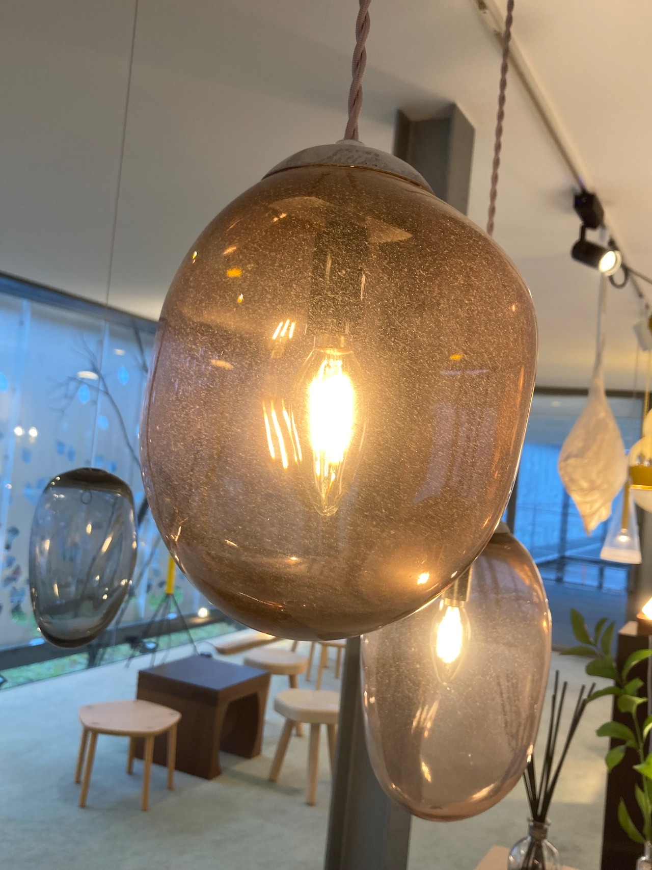 吹きガラスのペンダントライトは、一つ一つが職人の手によって丁寧に作られた、照明器具です。吹きガラス独特の風合いと色合いが、お部屋に上質な雰囲気を演出します。照明を灯すだけで、空間全体が温かな光に包まれます。