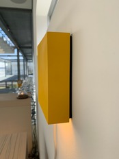 エクステリアウォールライトは、屋外だけでなく室内でも使用可能な多目的なウォールライトです。スッキリとしたデザインとしっかりとした明るさが特徴で、お庭や玄関先、リビングなど様々な場面で使用可能です。色味はイエロー色なので空間のアクセントにもなります。