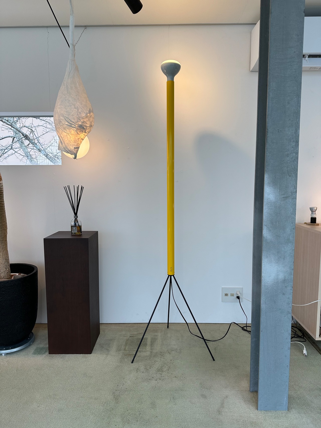 細長い支柱と金属製の三脚のみで構成されたミニマルなデザイン。ただそこにあるだけで空間のアクセントになります。また、支柱はランプを取り付けるのに最適なサイズに作るなど、無駄なものを省きながらも美しさを追求するカスティリオーニ兄弟らしさが感じ取れる照明器具です。